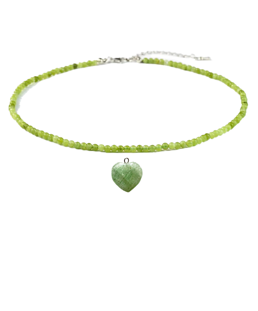 Succombez à la délicatesse du collier "Pulse", une pièce élégante qui allie pureté et modernité. Orné de perles en Péridot et d’un pendentif cœur en Quartz Vert, ce bijou incarne amour, équilibre et bien-être. Son design épuré et raffiné en fait un accessoire idéal pour toutes les occasions, qu'elles soient chic ou décontractées.