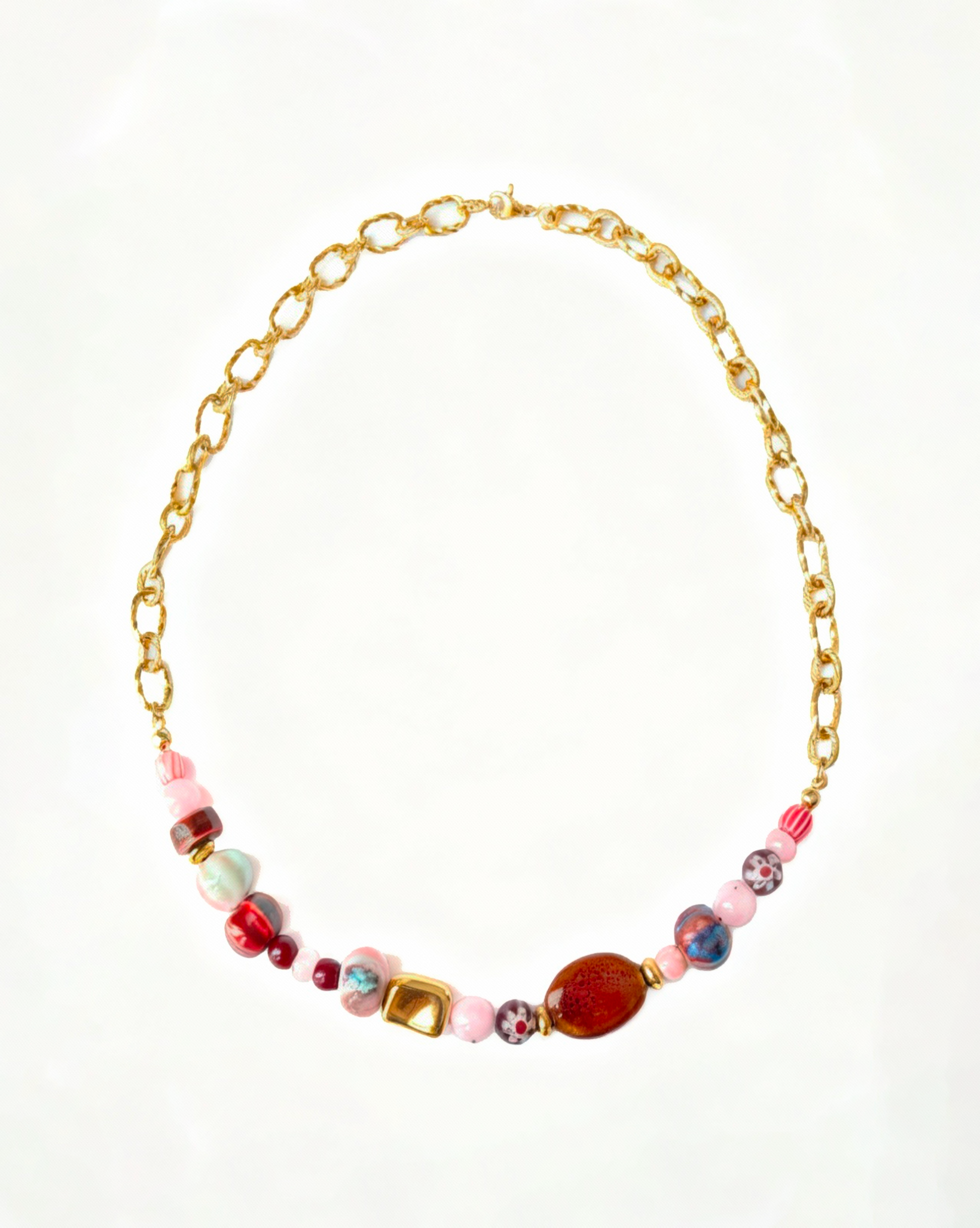 Matériaux : chaîne en acier inoxydable, perles en céramique, pierre naturelle, verre, murano, acier inoxydable